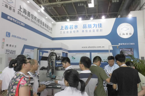 上海善佳在本次展會上,展出了SJ-303全自動密封涂膠條設備以及SJ-304微量精密密封點膠設備。這兩款設備獨特的外觀和智能化的操作深受參觀客戶的肯定。